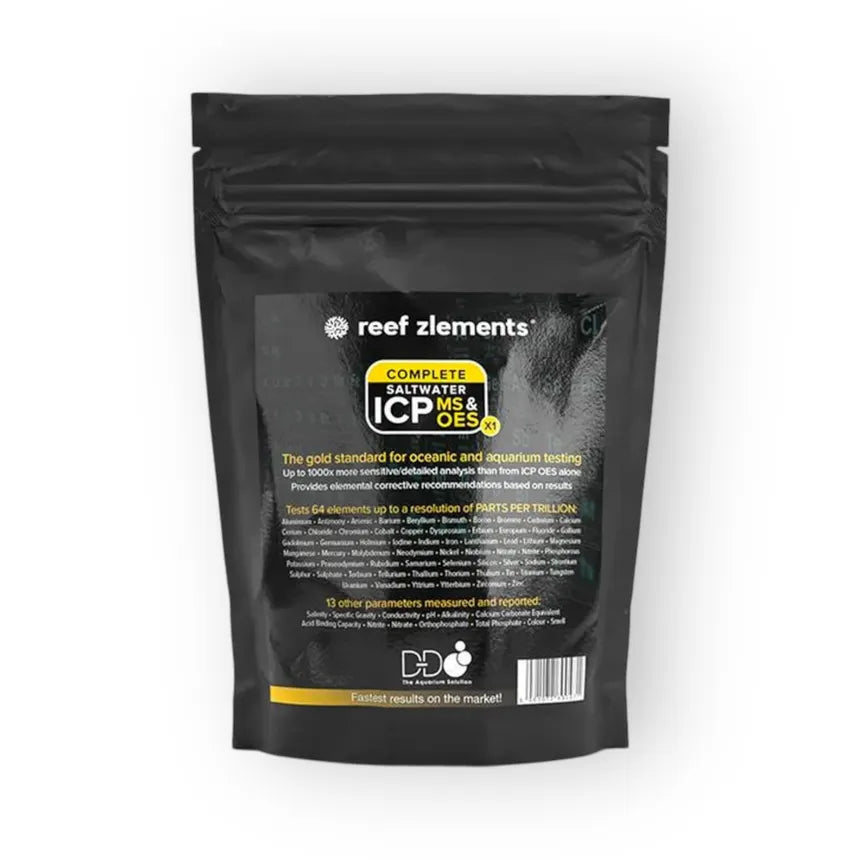 Reef Zlements ICP MS & OES Saltwater Single is a comprehensive laboratory water analysis test designed specifically for saltwater aquariums. Using advanced ICP-MS (Inductively Coupled Plasma Mass Spectrometry) and OES (Optical Emission Spectrometry) technology, it measures a wide range of elements — from major components to trace and ultra-trace elements — with high accuracy and precision.